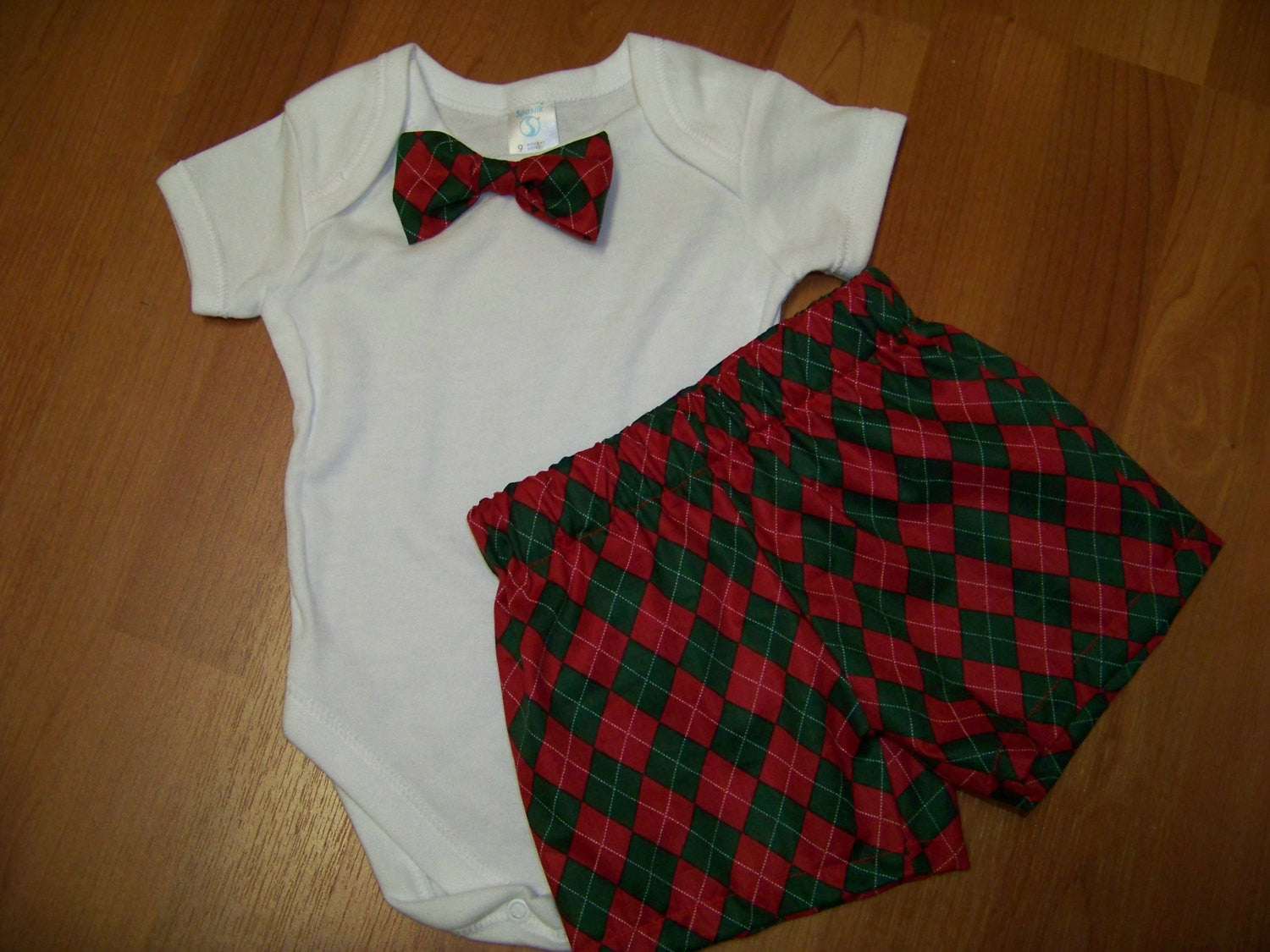christmas short set boys two piece custom boutique shorts and matching bowtie shirt bow tie