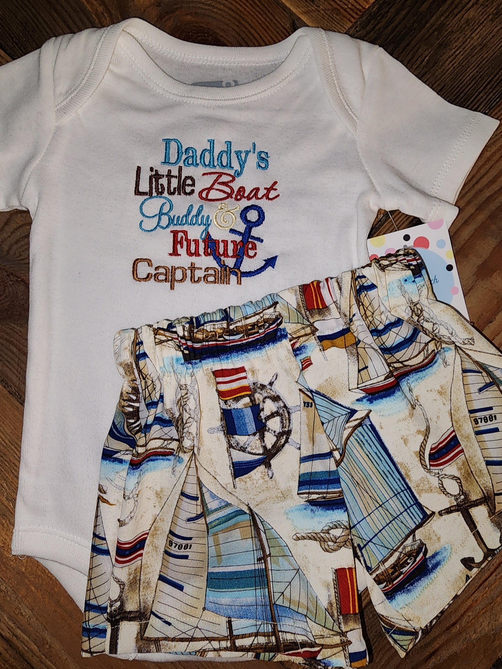 Look your little one's cutest while on the waves with Daddy's Boat Buddy Two Piece Outfit. This two-piece set features an adorable boat print to pay tribute to their nautical adventures and is comfortably crafted for little ones on the move. Great for a day on the lake or a weekend cruise with Dad.