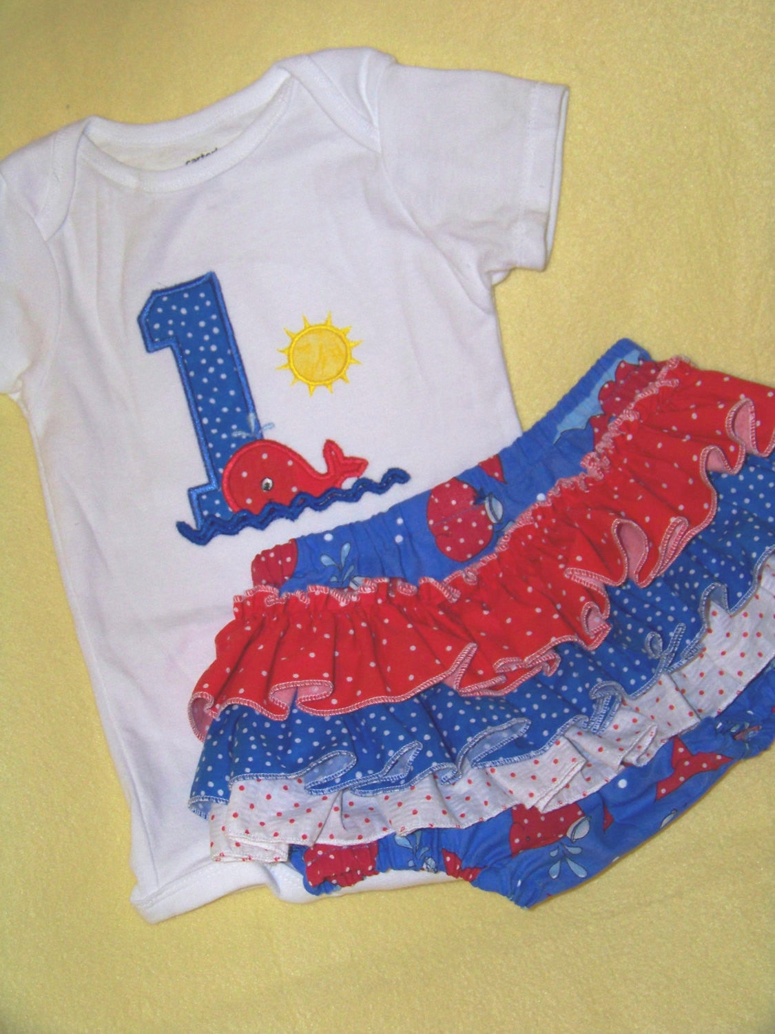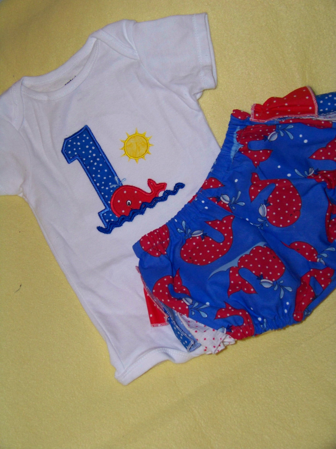 Whale first birthday size 18 months Two piece ruffle bottom set.