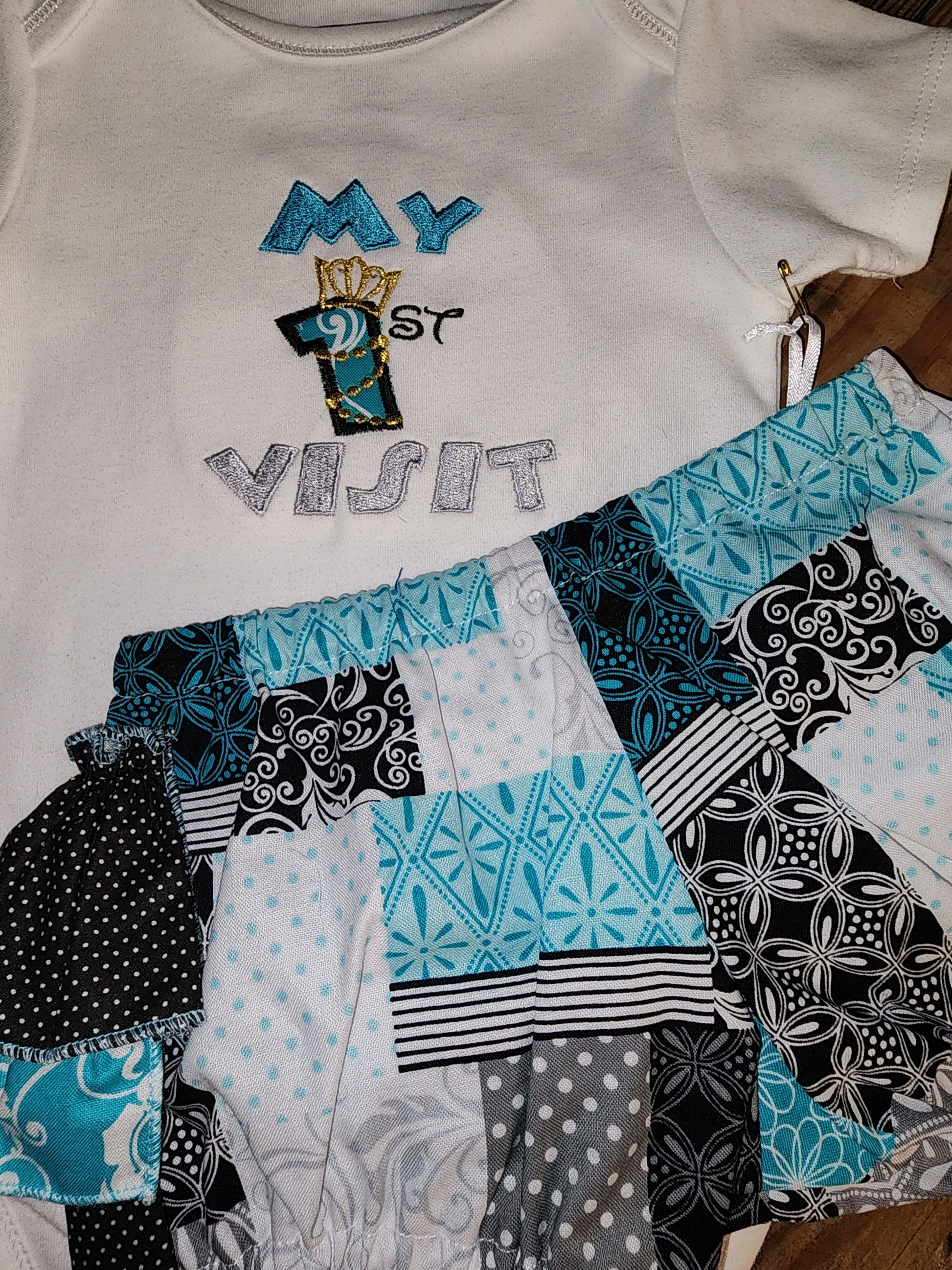 First Visit Size 6/9m Two Piece Ruffle Bottom Set