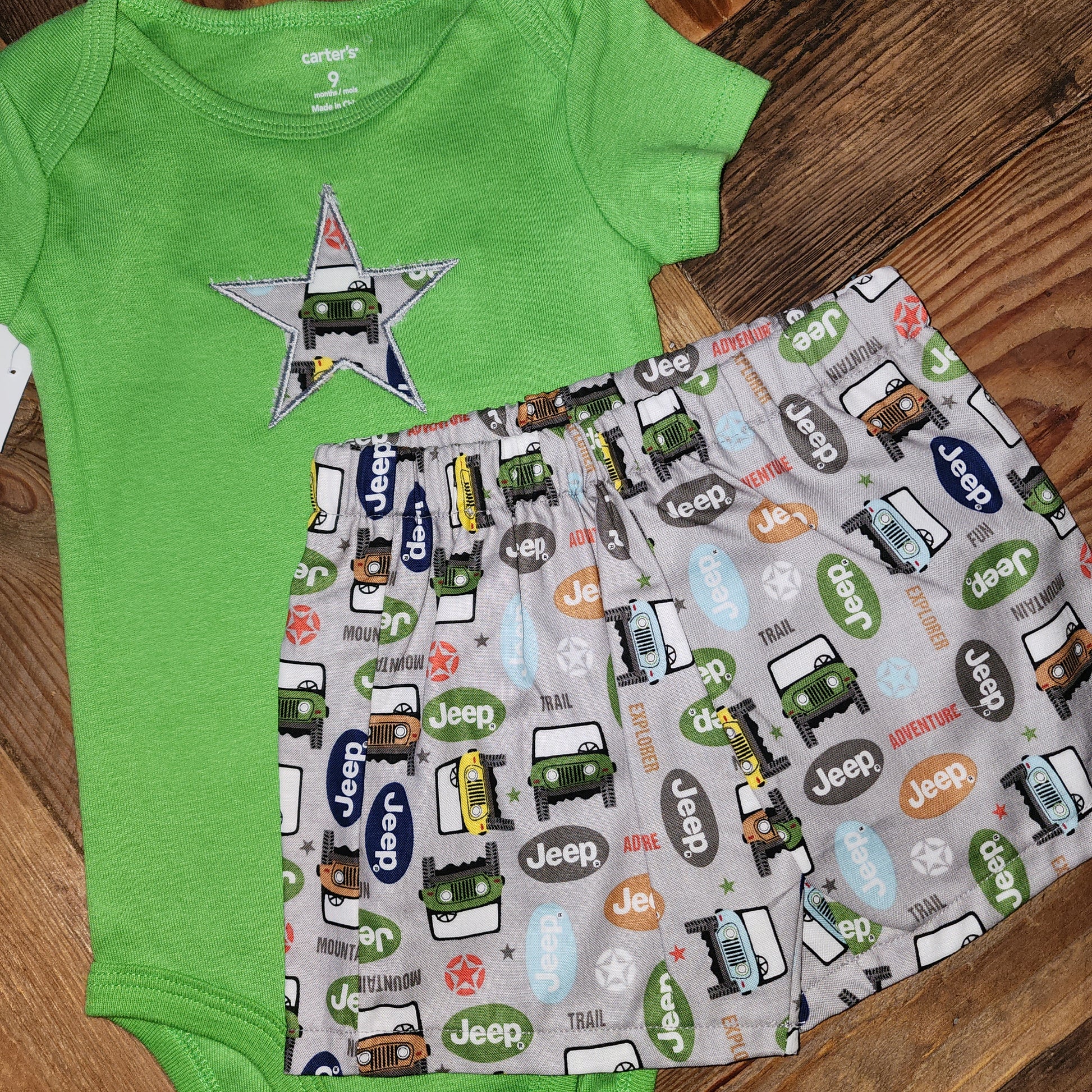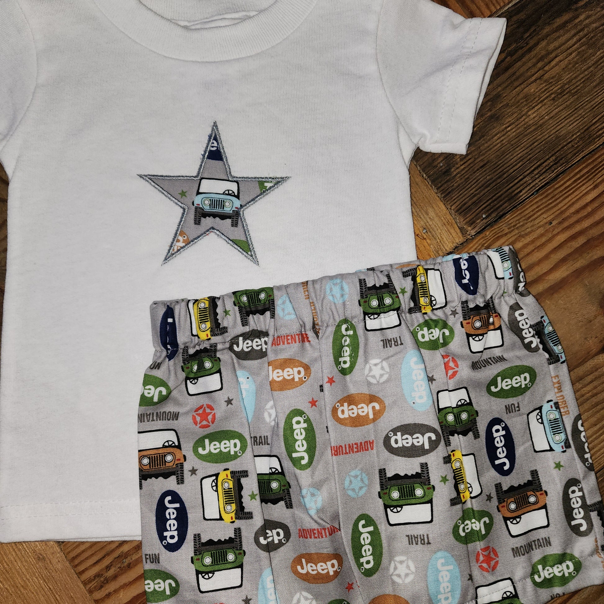 "Experience the rugged lifestyle with our Jeep Fan Two Piece Short Set. Made with licensed and rare Jeep fabric, this set is perfect for any true Jeep enthusiast. Embrace the adventure and show off your love for Jeep with this unique and stylish set."