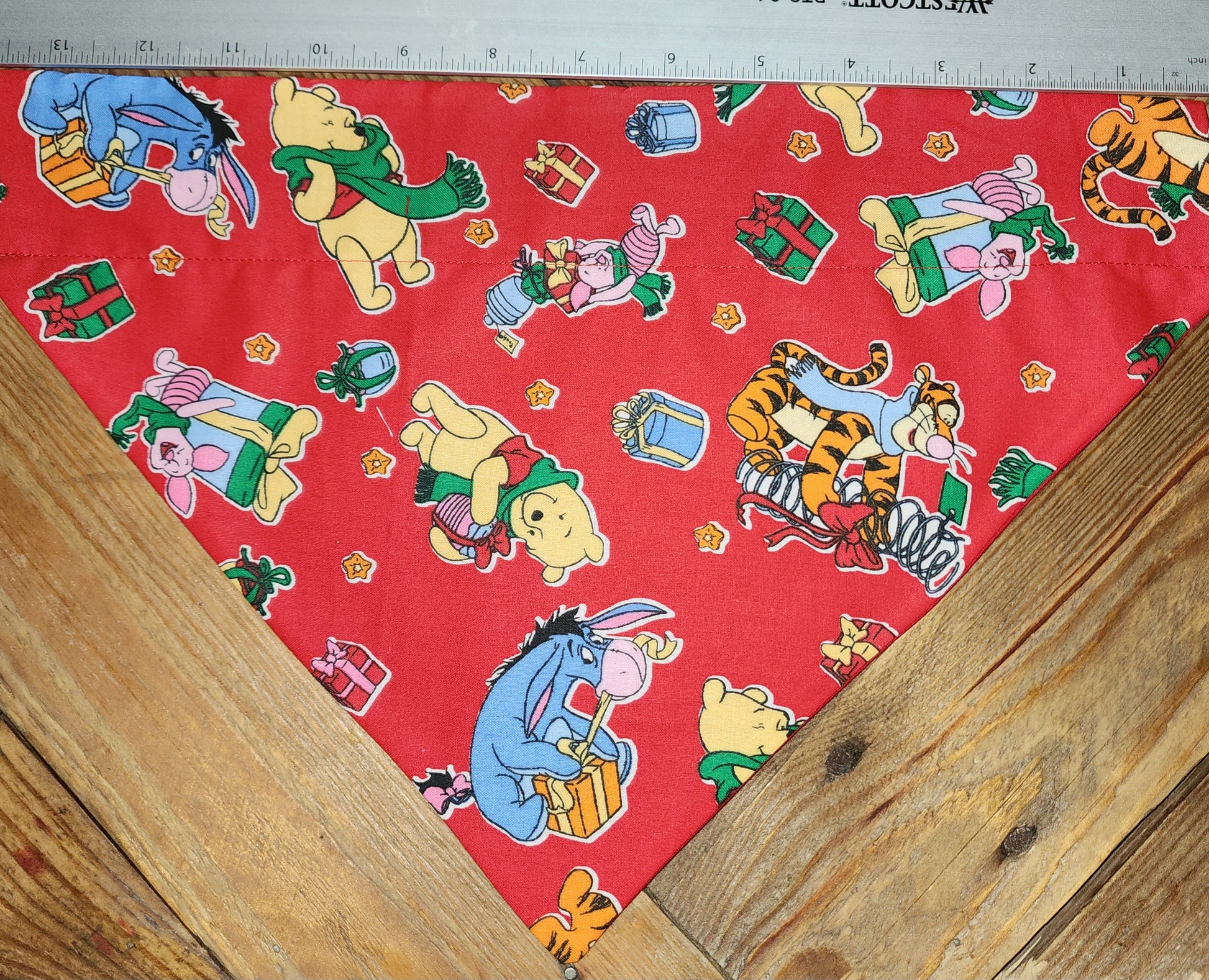 Bring the magic of Christmas to your pup with this festive Pooh and Friends bandana. Featuring all of your favorite characters: Pooh, Piglet, Eeyore, and Tigger, this large bandana is the perfect way to celebrate the season. Crafted from durable materials, this bandana can stand up to everyday wear and tear. Bring some holiday cheer and make sure your pup is in the Christmas spirit.