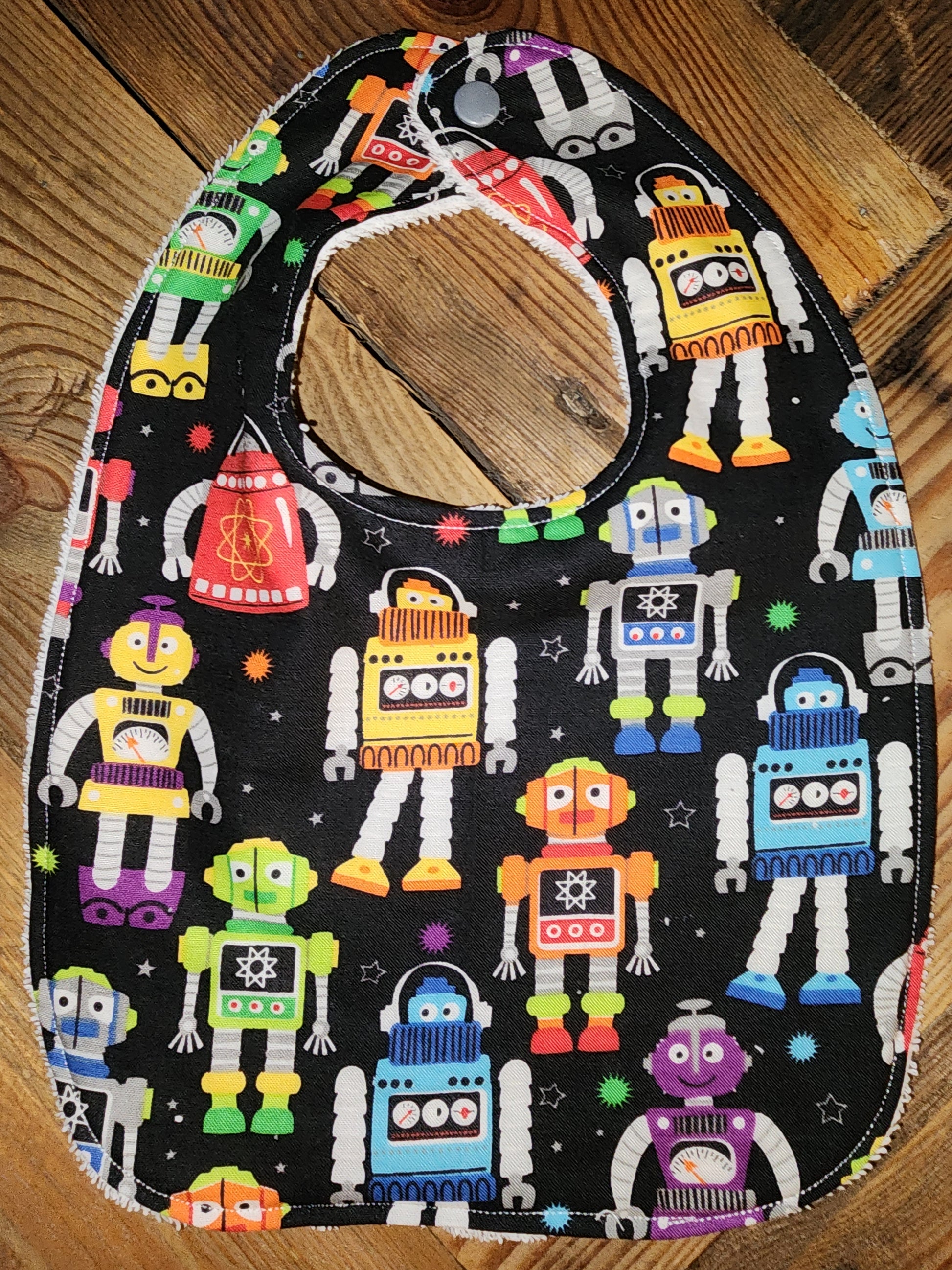 Cover your little one in tech-inspired style with this Robot Bib – perfect for a future robot master! Your baby will look like a robot-in-training with its one-of-a-kind design. Go ahead and make your tiny tot look even tinier...and cooler!