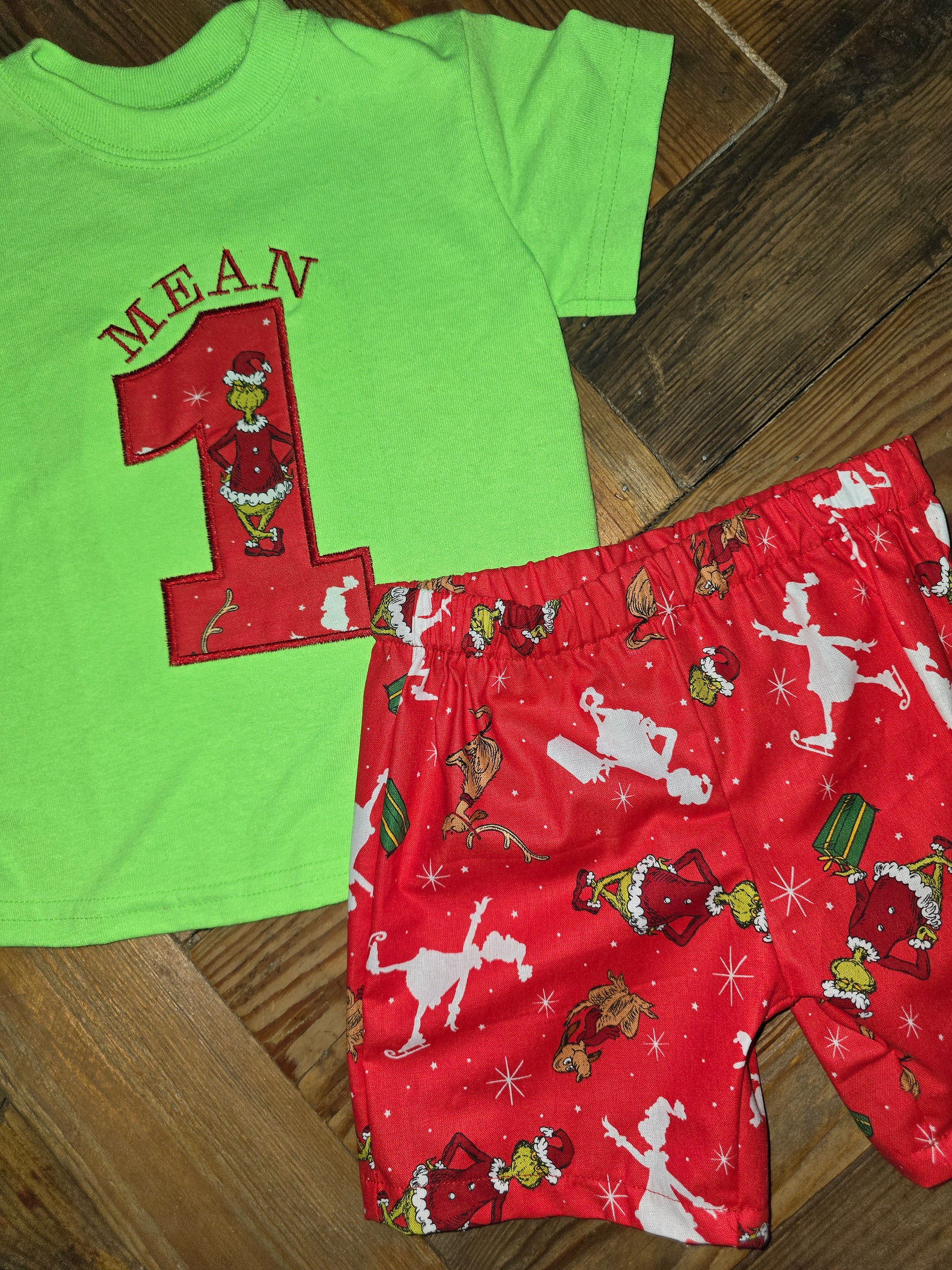Mean One Grinch Themed First Birthday Size 18m Two Piece Set