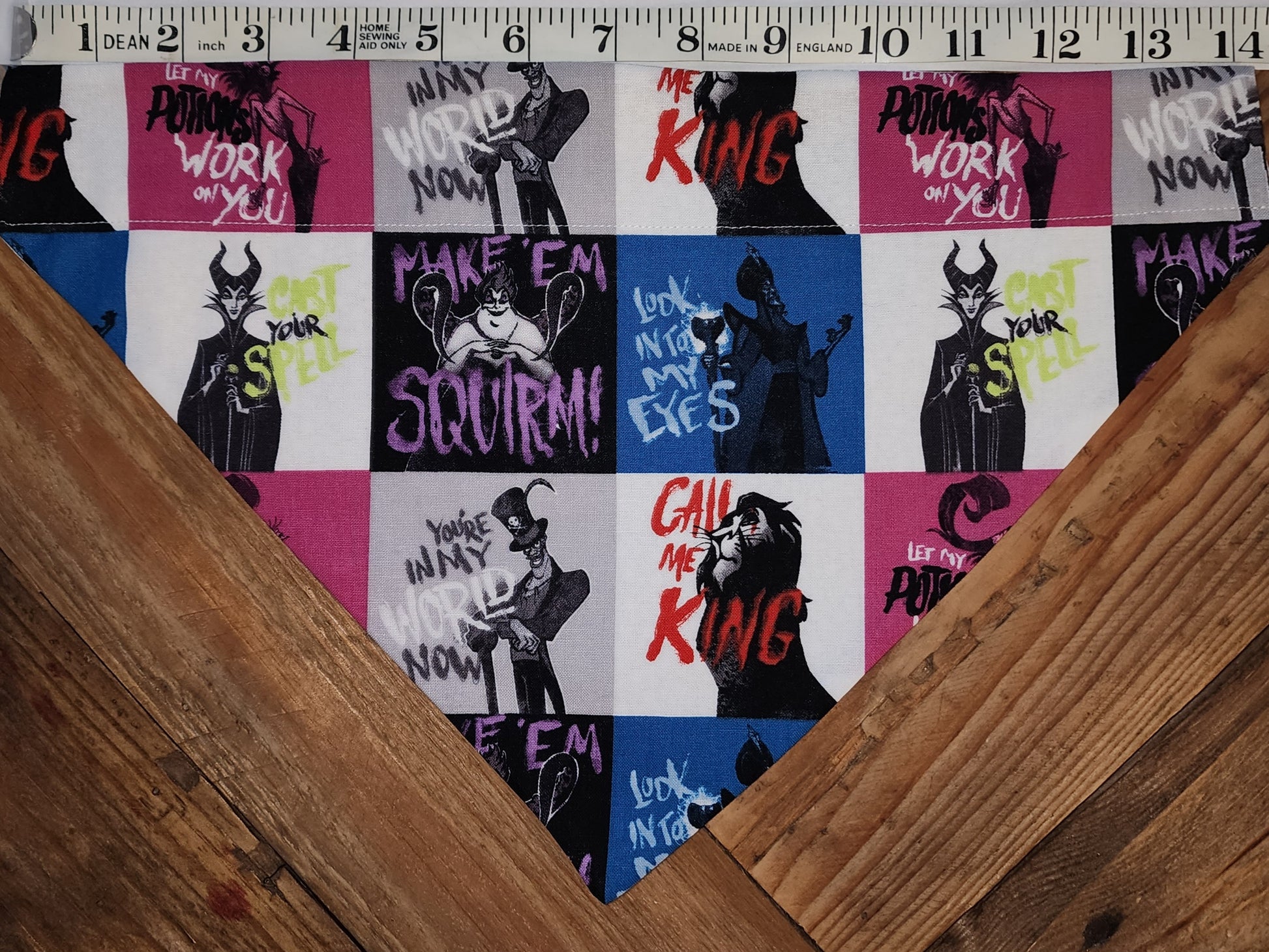 The Villians Large Dog Bandana provides your pup with the perfect accessory for a villainous look. This bandana is stylish and made from durable fabric to stand up against the most active dogs. Enjoy the added benefit of easy maintenance. Simply throw it in the washing machine for a clean, fresh look.
