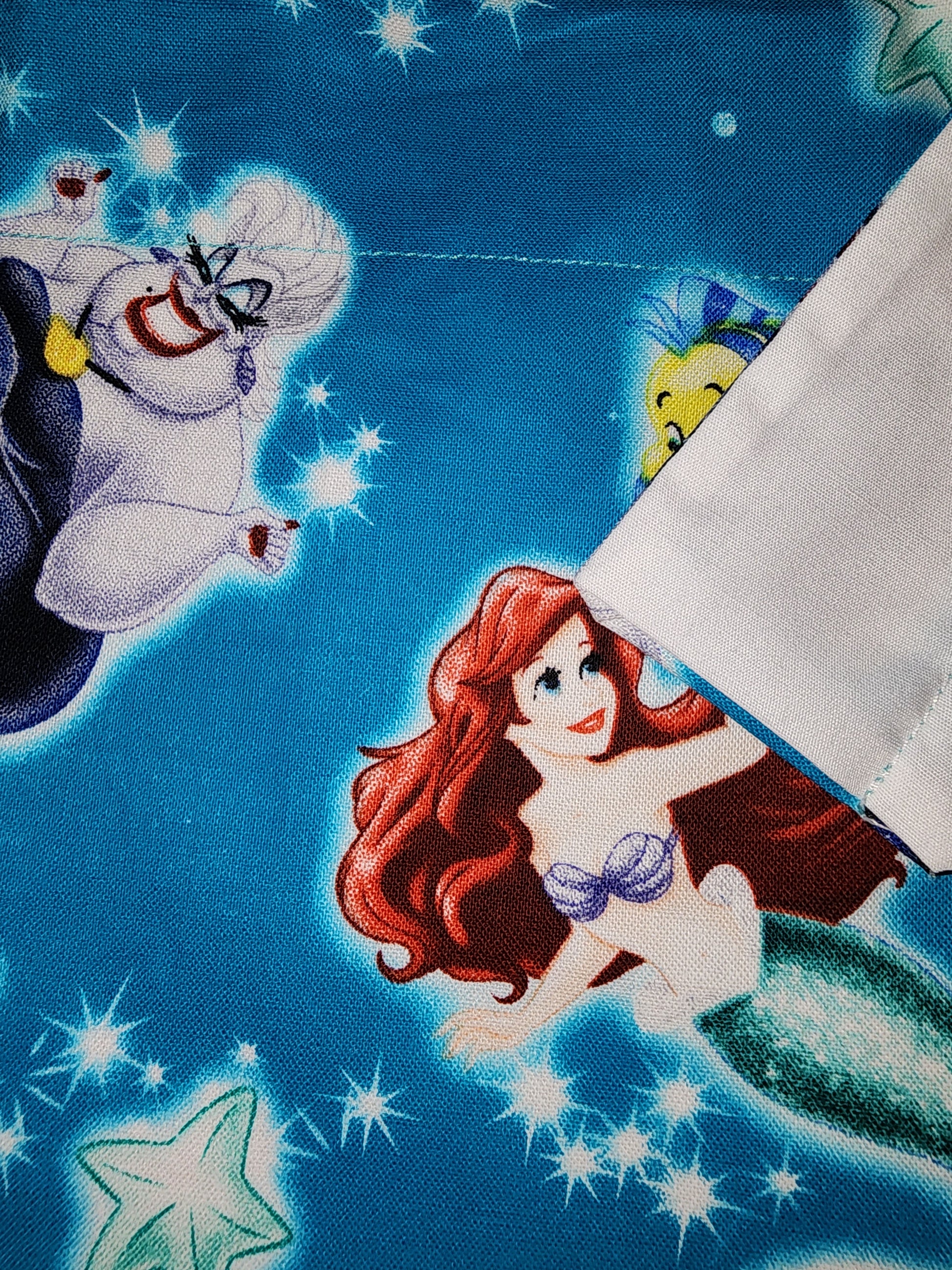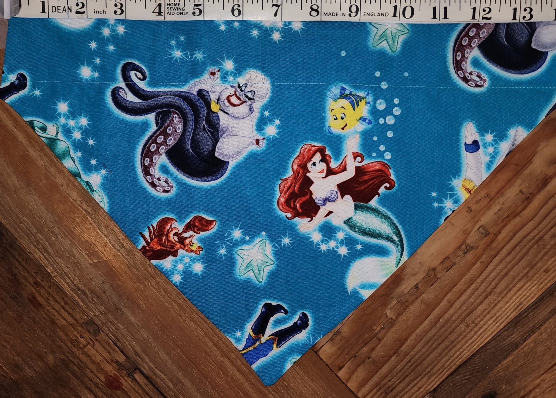 Make your pup stand out at the doggy park with this Little Mermaid and Ursula large dog bandana. Perfect for any fan of Disney, this 100% cotton bandana is the perfect accessory to show off your pup’s style.