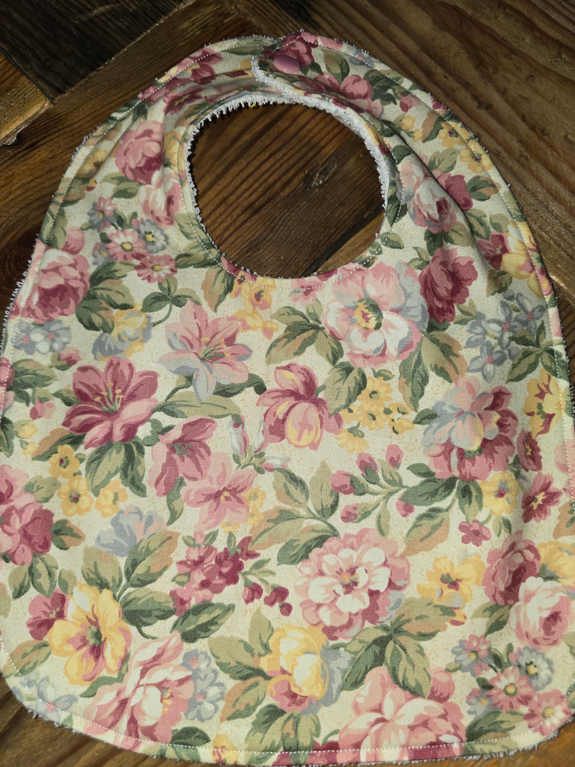 This vintage inspired floral baby bib is the perfect addition to any outfit. Made with delicate floral patterns, it adds a touch of elegance to mealtime. Keep your little one clean and stylish with this charming bib.